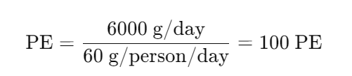 - PE vs. Population Count: It is important to note that PE is not a direct measure of the actual population but rather a calculation of how much sewage infrastructure is used. It represents a virtual population responsible for the combined BOD generation during a specified period.