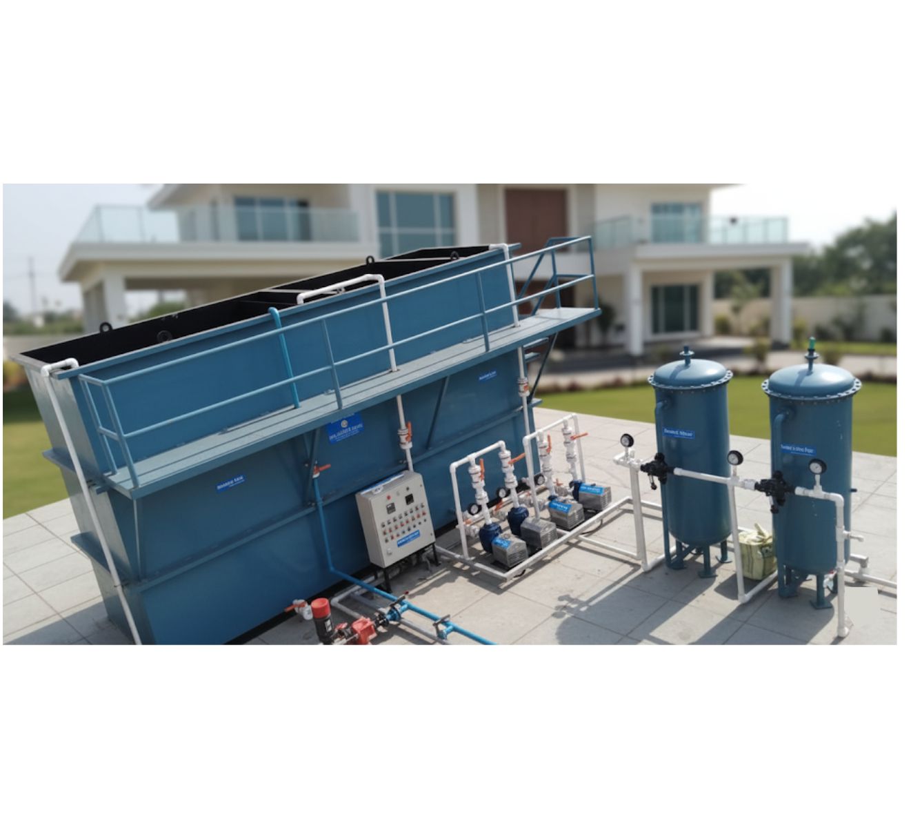 Capacity: 1–500 KLD+, Technologies: MBBR, MBR, SBR, ASP, Features: Compact, odor-free, automated, low-maintenance, energy-efficient STP plants for residential apartments & bungalows.