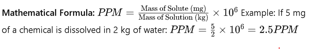 In various industries, including water treatment, chemistry, and environmental science, we often need to measure extremely small quantities of a substance within a much larger quantity of another substance. The term Parts Per Million (PPM) is used to express these minuscule concentrations efficiently, making it easier to comprehend measurements instead of using cumbersome decimals or large numbers (e.g., 0.000016 or 1 car in 13,009,920 feet).